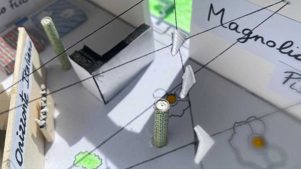Dal 22 maggio al 29 giugno, lo spazio corner del Maxxi accoglie Giardino all’italiana, una mostra firmata da Nathalie Grenon Sartogo ed Elica Sartogo dello studio Sartogo Architetti. L’esposizione parte idealmente da Villa Borghese, cuore verde di Roma e archetipo di giardino italiano, e si sviluppa come un racconto tridimensionale fatto di oggetti, materiali e atmosfere. Qui tutto si trasforma: le sedie diventano limoni, le scrivanie magnolie, i comodini foglie di fico o ninfea, evocando il maschile e il femminile in un linguaggio naturale e simbolico.