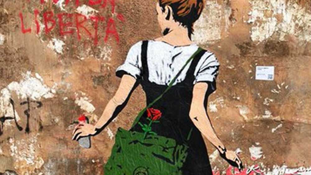 In via Rasella a Roma, una strada che custodisce nella sua memoria uno dei capitoli più intensi della Resistenza, è apparso un nuovo murale firmato da Tvboy. L’opera, realizzata in occasione dell’ottantesimo anniversario della Liberazione, ritrae una giovane di spalle, con una borsa a tracolla, una rosa e una bomboletta spray, simboli potenti di speranza e lotta.